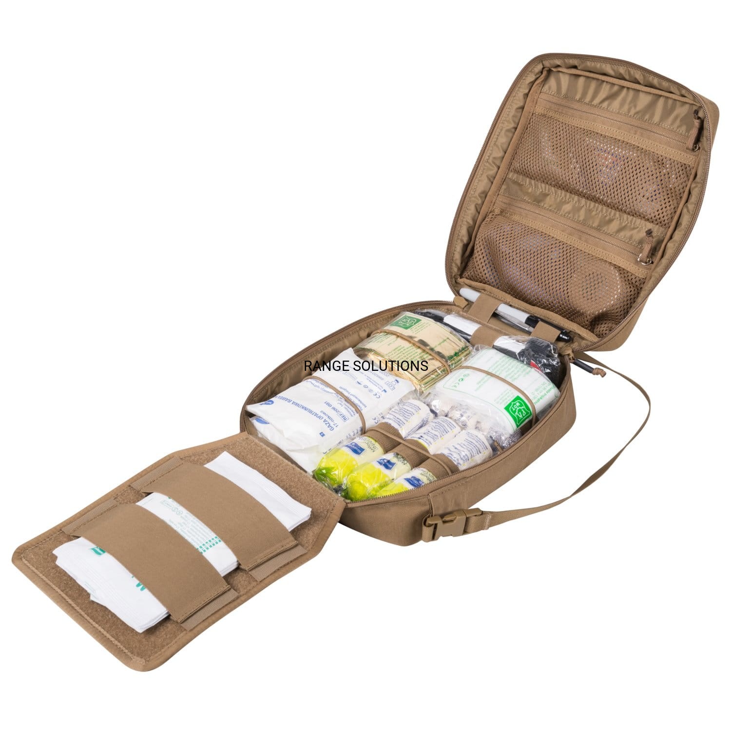 -Rzepy z tyłu apteczki (z możliwością ich zaślepienia) umożliwiają doczepienie apteczki do tapicerki bagażnika samochodu, czy panelu velcro (np. torby Rangemaster®)
