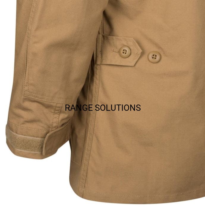 - Skośne kieszenie na ramionach z klapkami na rzep