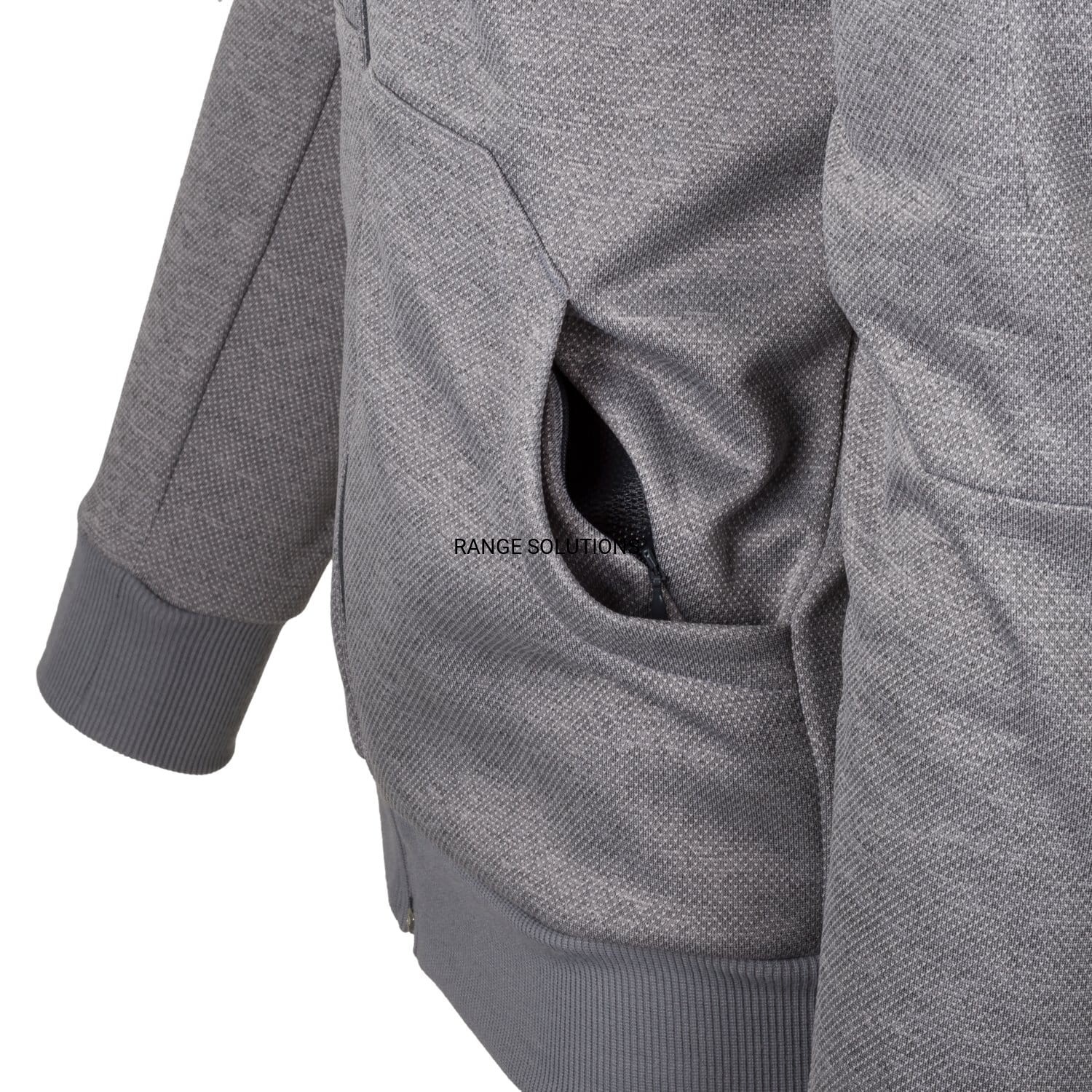 URBAN TACTICAL HOODIE® to lekka, klasyczna bluza z kapturem zapinana z przodu na zamek. Prosty krój oraz zastosowanie elastycznego materiału sprawia, że bluza ta idealnie nadaje się do działań miejskich. Dwie kieszenie z przodu pomieszczą rzeczy, które chcemy mieć pod ręką, ale mogą posłużyć również do ogrzania dłoni w chłodniejsze dni. Dodatkowo, wewnątrz tych kieszeni znajdują się mniejsze, ukryte kieszonki zapinane na zamek. Dwie wewnętrzne siatkowe kieszenie zmieszczą portfel czy dokumenty, skutecznie zabezpieczając je przed kradzieżą bądź zgubieniem. Kieszenie na ramionach zapinane są na kryte zamki, niemal niewidoczne już z niewielkiego dystansu. Na ramionach umieszczone zostały duże panele rzepa dla łatwej personalizacji. Dodatkowy panel rzepa umieszczony został z tyłu regulowanego kaptura.