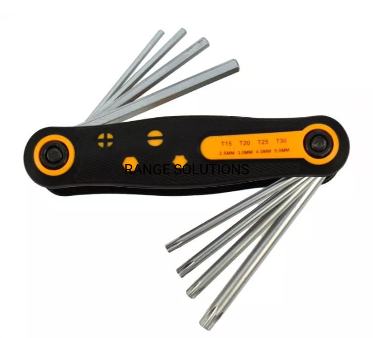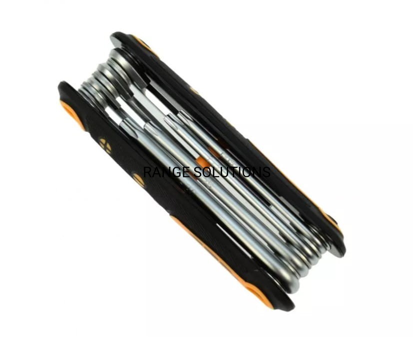 To poręczne, wytrzymałe narzędzie wyposażone w gumowane uchwyty zapewnia komfort podczas użytkowania, a stal CR-V gwarantuje długotrwałość. Zestaw obejmuje 8 kluczy Torx i Hex o różnych rozmiarach, niezbędne do regulacji sprzętu strzeleckiego.