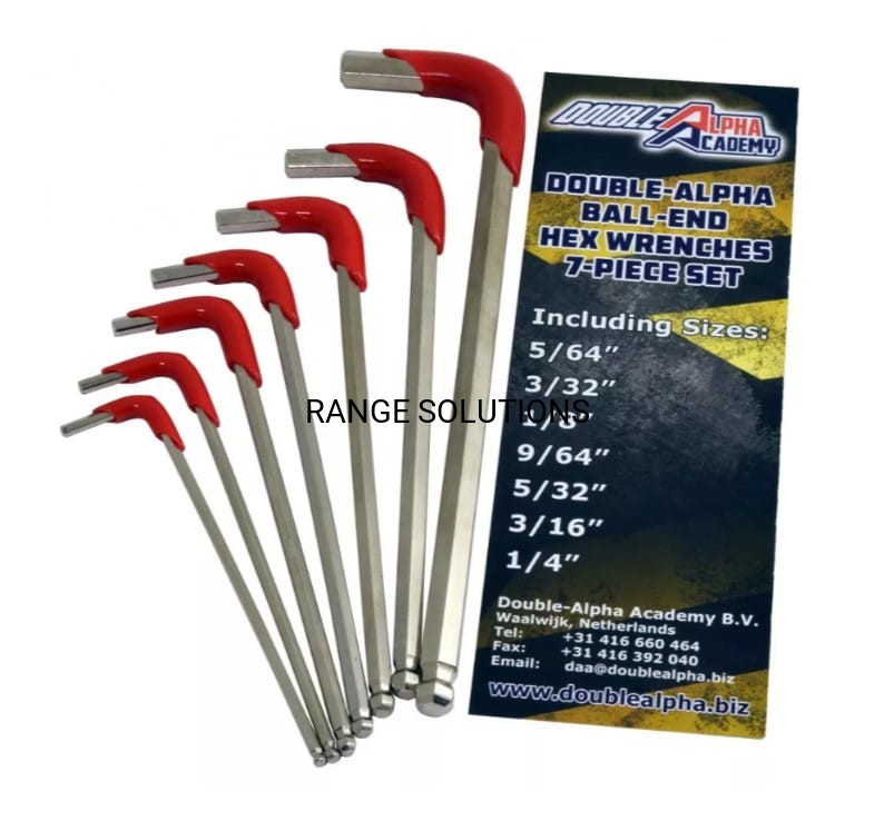 DAA Reloading Hex Key Set to 7-częściowy zestaw wysokiej jakości kluczy imbusowych, zaprojektowany specjalnie do pracy z prasami Dillon i innymi urządzeniami tego typu. Klucze wyposażono w długie ramiona zakończone kulistymi końcówkami, co umożliwia łatwe odkręcanie i regulację śrub nawet pod niewygodnym kątem. Zestaw został zaprojektowany tak, aby być niezastąpionym elementem każdej torby narzędziowej dedykowanej na strzelnicę.