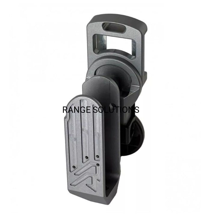 Przegub kulowy i regulacja wysokości szyny Flex zostały zaczerpnięte bezpośrednio ze sprawdzonej i przetestowanej konstrukcji kabury Alpha-X. Duży przegub kulowy 18 mm ze śrubą mocującą M6 umożliwia pełny zakres regulacji pochylenia i przechylenia oraz solidną blokadę. Łatwy dostęp od przodu umożliwia założenie i regulację kabury na pasie.
