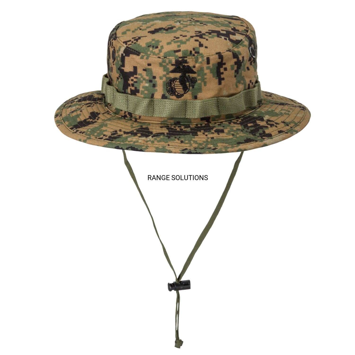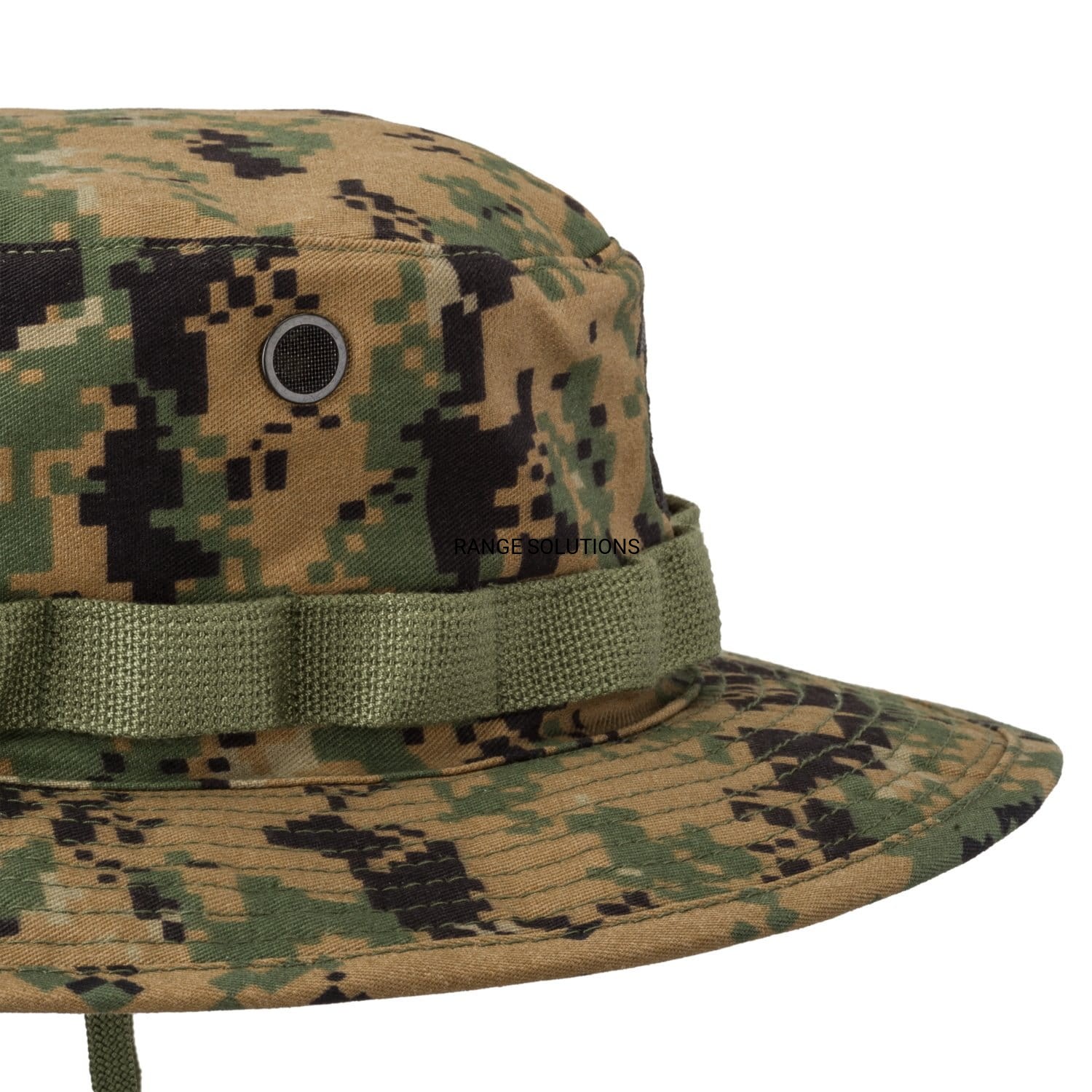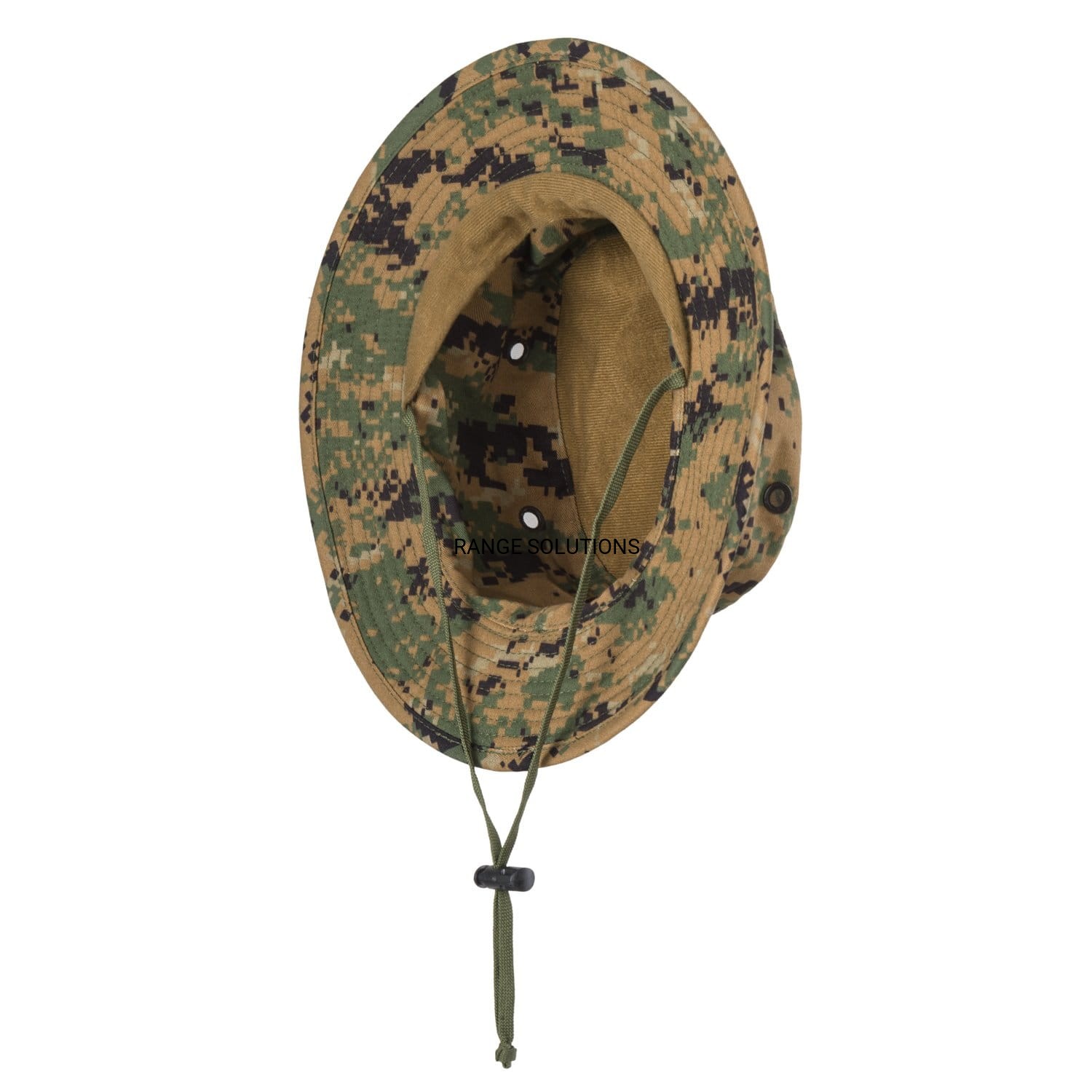 Tradycyjny kapelusz wojskowy w kroju Amerykańskiej Piechoty Morskiej z szerokim rondem i w nowym kamuflażu cyfrowym tejże formacji. Kapelusz zapewnia ochronę przed deszczem i promieniami słońca. Przeznaczony do użytku w terenie leśnym. Stanowi istotny element kamuflażu głowy. Czapka posiada otwory wentylacyjne oraz wyhaftowane logo Piechoty Morskiej na przedzie.