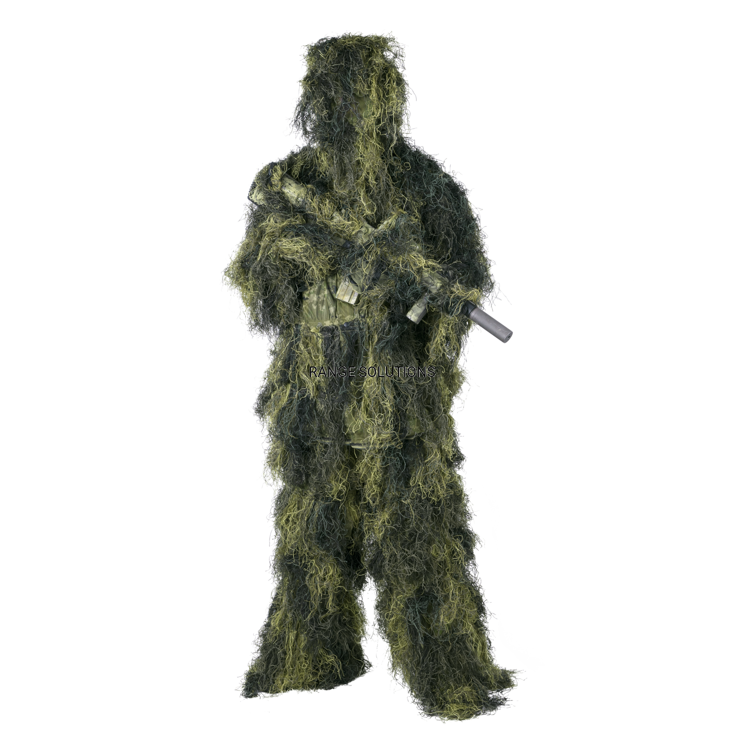 Ghillie Suit składa się z czterech elementów: bluzy, spodni, kapelusza oraz taśmy maskującej broń. Zestaw wykonany jest z przewiewnej siatki, do której przymocowane są elementy rozmywające sylwetkę użytkownika. Dzięki swojej konstrukcji, strój jest przystosowany do noszenia na ubraniu czy mundurze. Przelotowe kieszenie w bluzie i spodniach pozwalają dostać się do warstw znajdujących się pod strojem. Kapelusz, oprócz maskowania głowy, maskuje też twarz i zabezpiecza ją przed owadami, zaś taśma do maskowania broni rozmywa jej sylwetkę. Ghillie Suit jest obowiązkowym zestawem dla zwiadowców, strzelców wyborowych, snajperów oraz entuzjastów.