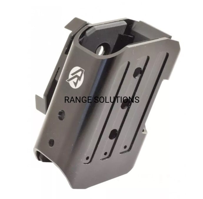 Korpus ładownicy Alpha Xi oferuje 8 punktów mocowania do wyboru – trzy pozycje wysokości dla strzelców praworęcznych lub leworęcznych oraz dwie opcje wysokości do montażu typu bullets-out. Aby zapobiec wszelkim możliwym ruchom, ruchom lub osłabieniom wpust na klucz jest stosowany w połączeniu z niestandardową śrubą z szerokim łbem.