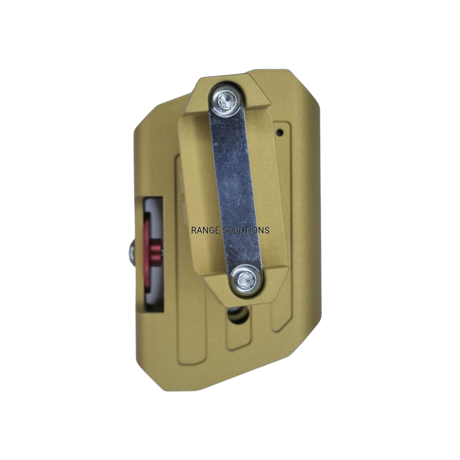 The ball joint is held in the aluminum belt hanger using a pressure coupling with a large T25 Torx M6 Screw. This offers a totally secure lock up and the option to make minute adjustments to the pouch’s angle and tilt.