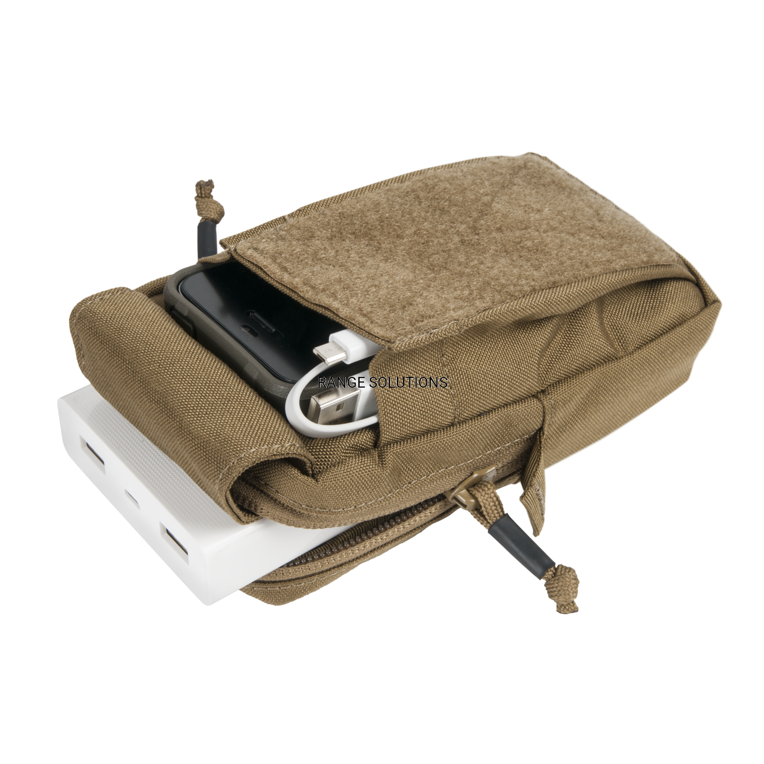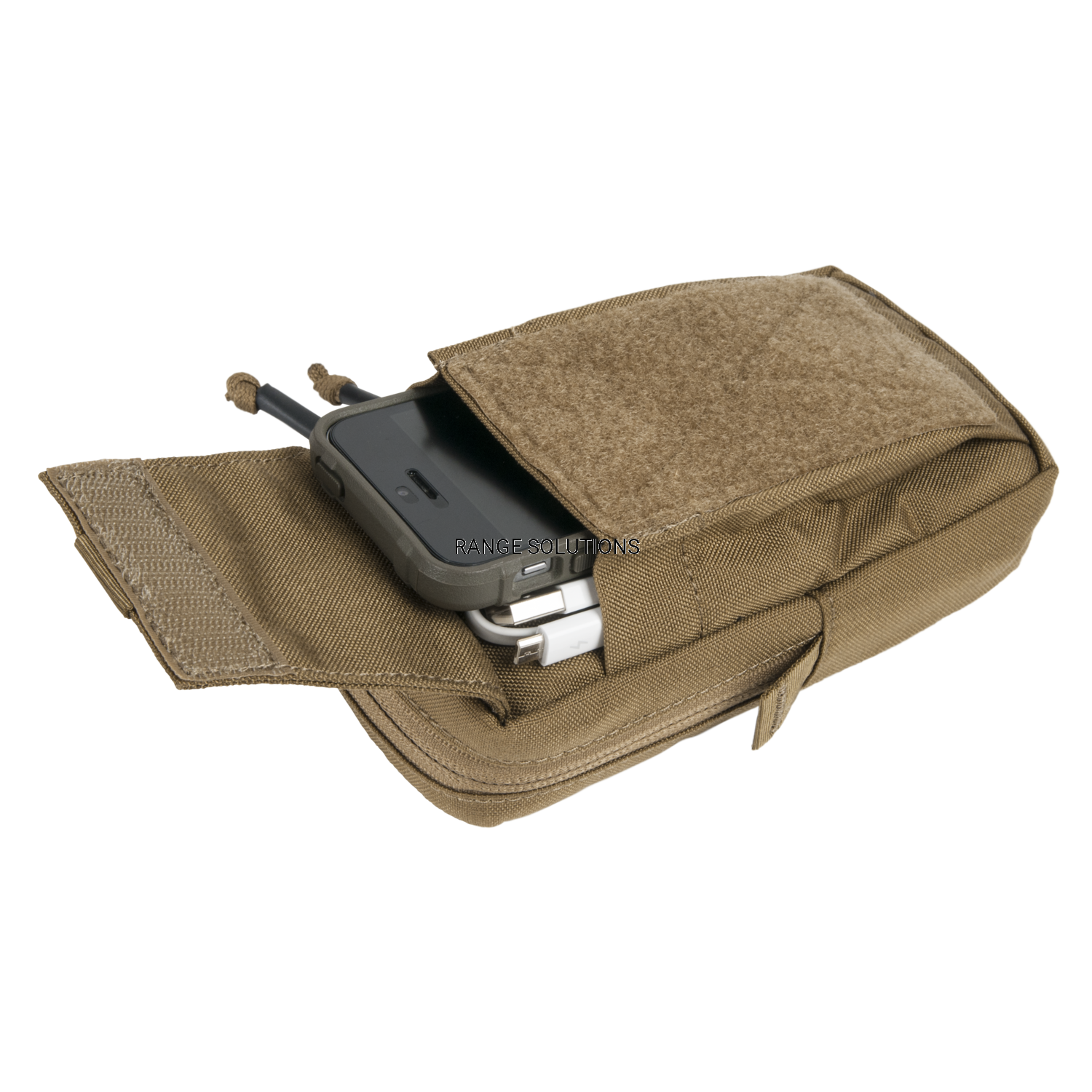 Średniej wielkości, wyściełana kieszeń na urządzenia elektroniczne, przeznaczona do noszenia pionowo na szelce plecaka lub platformie MOLLE/PALS. Zmieszczą się w niej smartfony, urządzenia GPS, przybory do pisania, itp.