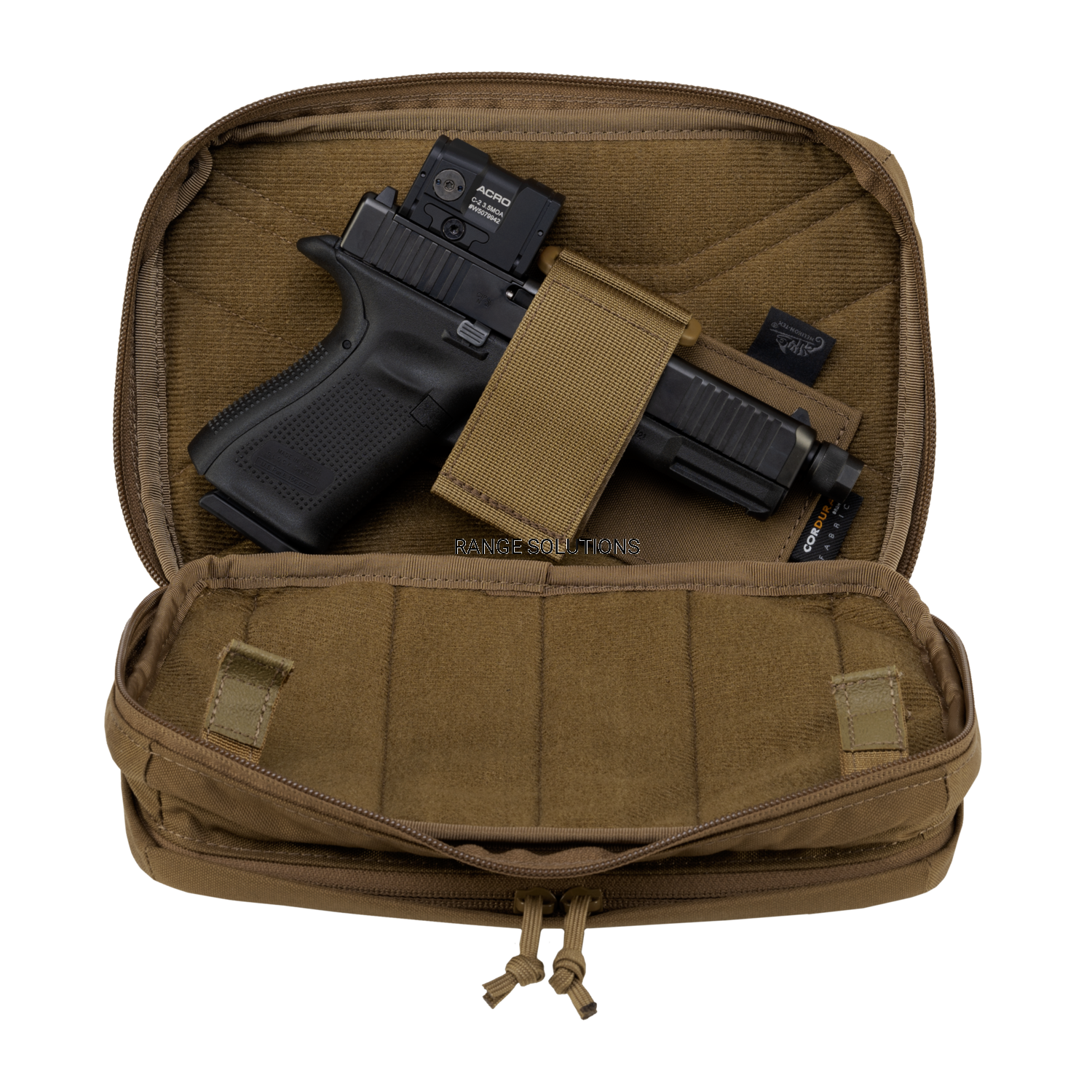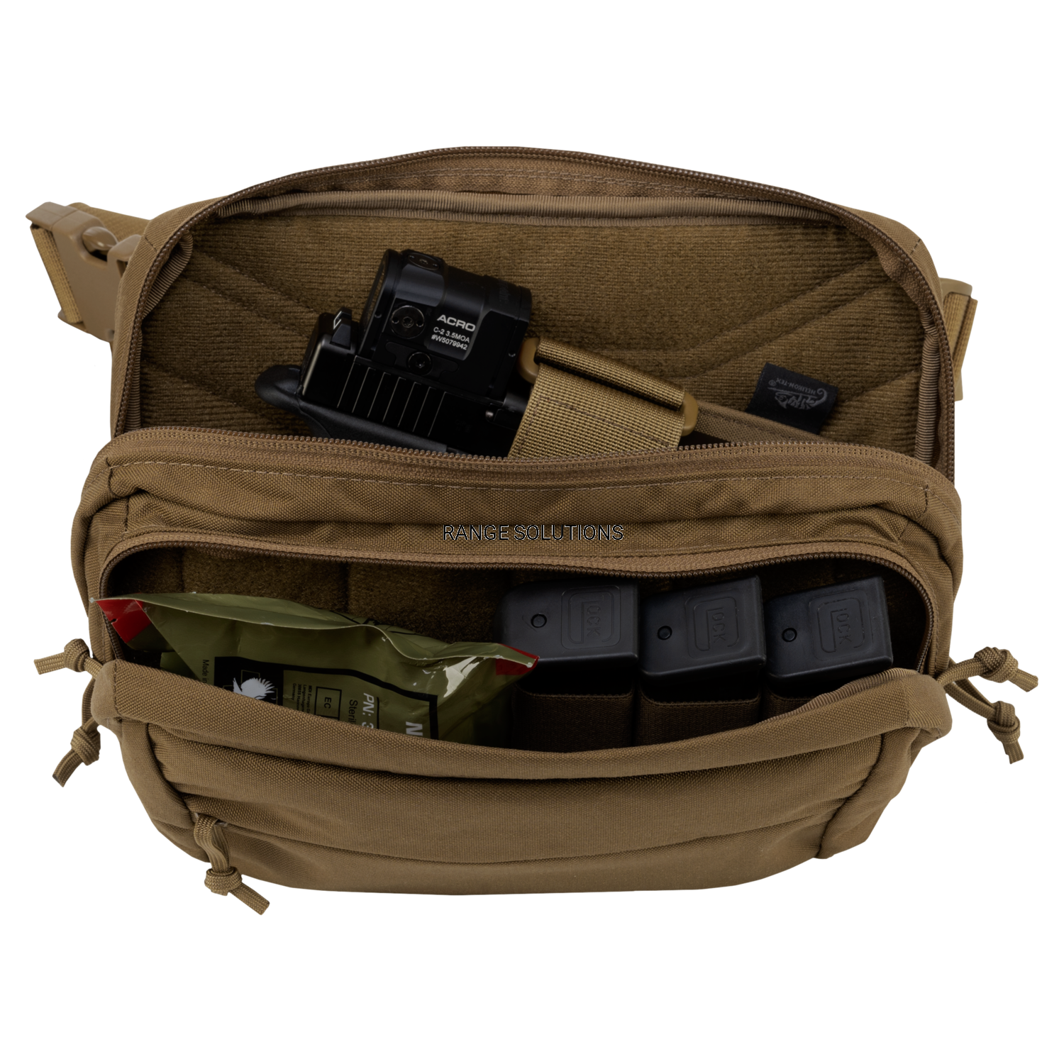 RAT CONCEALED CARRY WAIST PACK to duża nerka, która pomieści więcej przedmiotów i pozwala je lepiej zorganizować. Jest przy tym zaprojektowana tak, by nie zwracać niczyjej uwagi i dyskretnie wtopić się w miejską dżunglę. Nerka RAT CONCEALED CARRY WAIST PACK ma trzy kieszenie. Najmniejsza z nich to płaska, wszyta na froncie kieszeń z przegródkami. Druga jest większa, z zapinaną kieszenią z siatki i panelem miękkiego rzepa. Trzecia kieszeń rozpina się na całej szerokości i na obu ściankach ma miękki rzep. Jest w pełni kompatybilna z naszym Versatile Insert System. Dzięki temu sprawdzi się jako organizer EDC lub dyskretna nerka taktyczna do bezpiecznego przenoszenia broni. Dwie większe kieszenie są zapinane na dwustronne zamki, co pozwala na szybki dostęp do wnętrza. Do nerki RAT CONCEALED CARRY WAIST PACK dołączony jest sztywny, wypinany panel z serią otworów i gumową linką typu shock cord. To rozwiązanie sprawdzi się w sytuacji, kiedy zawartość musi być uporządkowana i dostępna od ręki (np. jako apteczka). Sztywny panel i miękkie rzepy to dwa systemy organizacji sprzętu w jednej nerce.