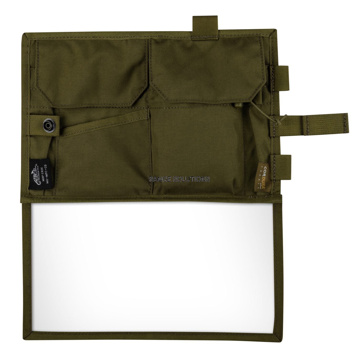 MAP CASE to kompaktowy pokrowiec, który nie tylko zapewni ochronę twojej mapy w zamykanej na zamek, przezroczystej kieszeni, ale także zabezpieczy ją przed zanieczyszczeniami. Pokrowiec został w całości wykonany z wytrzymałej Cordury® 500D. Na jego zewnętrznej stronie znajdują się dwie zamykane na napy kieszenie oraz dwie kieszenie otwarte. Ponadto na jednym z boków umieściliśmy pętle na długopis, sharpie itd. Gdy nie jest używany, MAP CASE składany jest na pół i zabezpieczany za pomocą napa. Uwaga - MAP CASE nie jest produktem wodoszczelnym, przez co nie zabezpieczy w pełni twojej mapy przed wilgocią.
