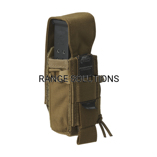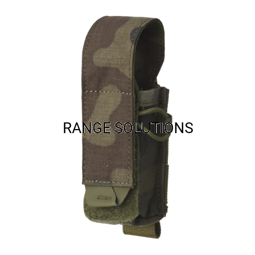 Pistol Magazine Pouch to funkcjonalna kieszeń na magazynek pistoletowy lub inny przedmiot o podobnych wymiarach. Kieszeń zapinana jest za pomocą klapy z rzepem zakończonej antypoślizgowym uchwytem ułatwiającym otwarcie. Demontowana klapa oraz regulowany, elastyczny ściągacz pozwalają na swobodne używanie kieszeni w wersji otwartej, a usztywniona przednia ścianka kieszeni pozwala na łatwe wkładanie i wyjmowanie magazynka. Kieszeń montowana jest za pomocą systemu modułowego zgodnego z MOLLE/PALS.