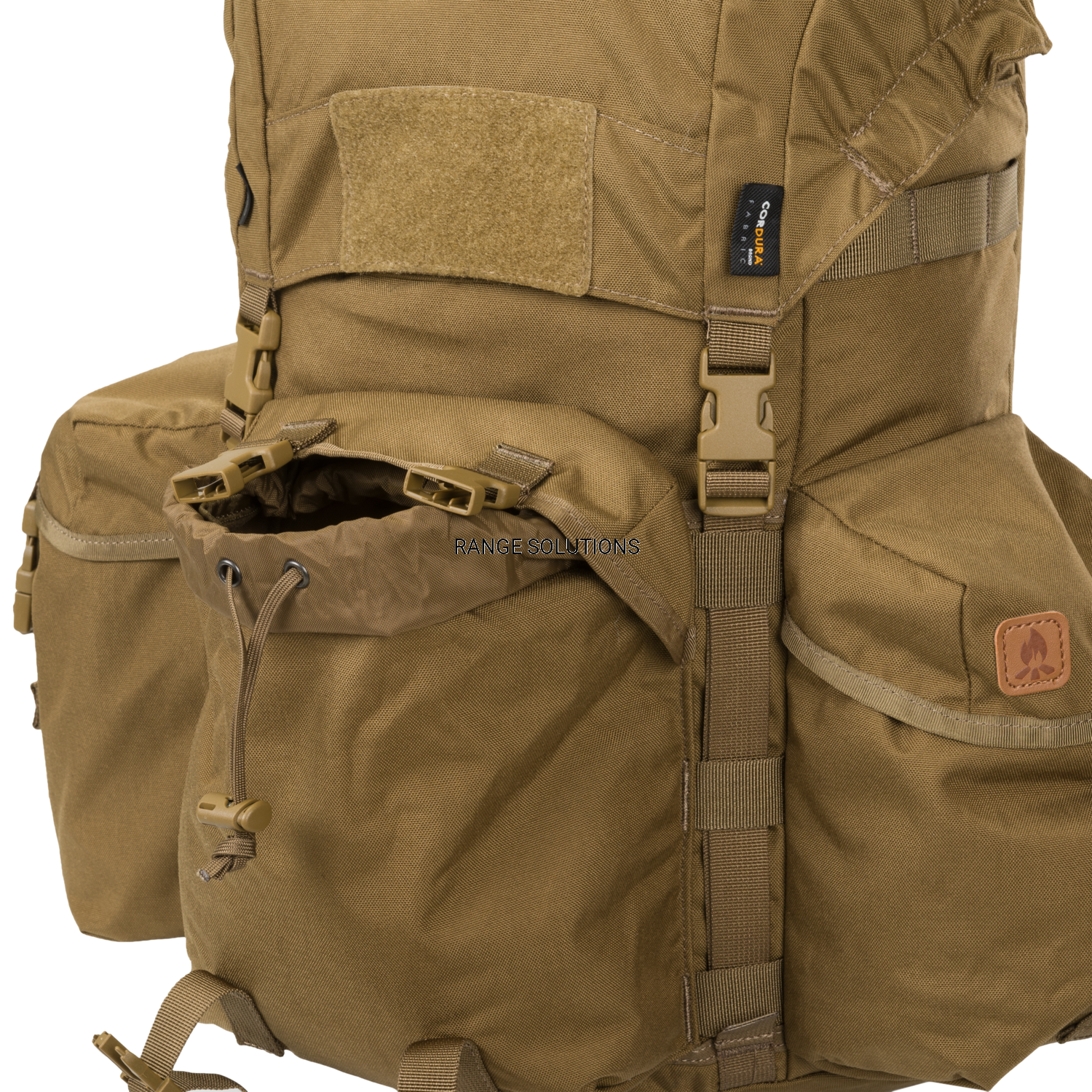 Sukces Matyldy potwierdził nas w przekonaniu, że w linii Bushcraft jest miejsce na nowy plecak. Tak powstał Bergen. Na pierwszy rzut oka podobny do pomniejszonej wersji Matyldy, ale jednak zgoła odmienny. Bergen także nawiązuje historyczne do plecaków angielskich i polskich sił specjalnych z czasów II wojny światowej. W założeniu plecak ma pomieścić najważniejsze wyposażenie na krótką wędrówkę. Główna komora o pojemności 18 l mieści odzież i sprzęt do nocowania, w kieszeniach po bokach zmieścisz żywność lub butelki z wodą. Środkowa kieszeń posiada ściągany komin, który zabezpiecza drobne przedmioty przed zgubieniem. Bergen ma trzy miejsca do przenoszenia siekiery oraz dwie kieszenie na piłę lub nóż. Do ukrytej na froncie taśmy MOLLE/PALS można dopinać kieszenie lub rękawiczki. Dodatkowe elementy wyposażenia można podpiąć od spodu lub do klapy plecaka. Wykonany w całości z Cordury 500D.