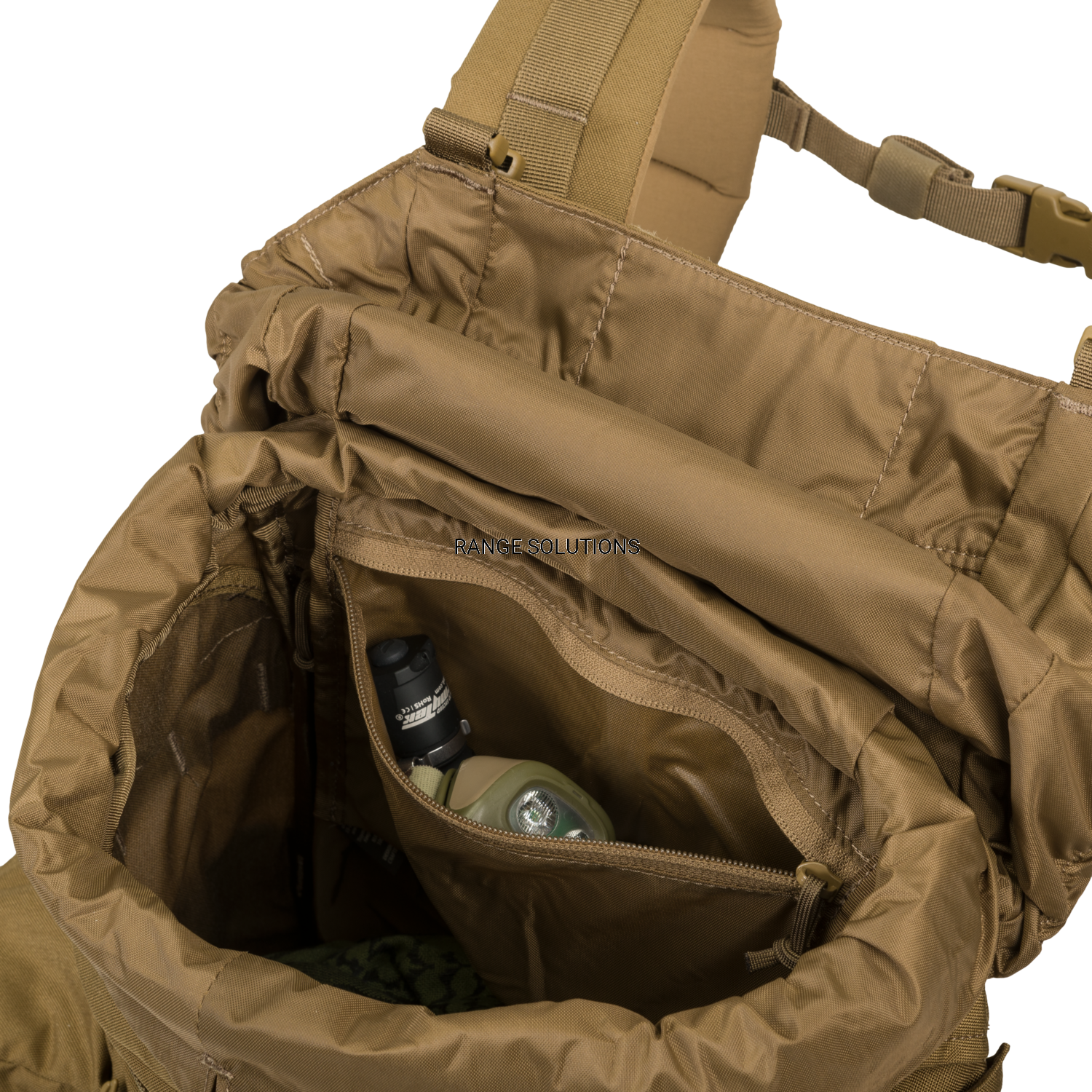 Sukces Matyldy potwierdził nas w przekonaniu, że w linii Bushcraft jest miejsce na nowy plecak. Tak powstał Bergen. Na pierwszy rzut oka podobny do pomniejszonej wersji Matyldy, ale jednak zgoła odmienny. Bergen także nawiązuje historyczne do plecaków angielskich i polskich sił specjalnych z czasów II wojny światowej. W założeniu plecak ma pomieścić najważniejsze wyposażenie na krótką wędrówkę. Główna komora o pojemności 18 l mieści odzież i sprzęt do nocowania, w kieszeniach po bokach zmieścisz żywność lub butelki z wodą. Środkowa kieszeń posiada ściągany komin, który zabezpiecza drobne przedmioty przed zgubieniem. Bergen ma trzy miejsca do przenoszenia siekiery oraz dwie kieszenie na piłę lub nóż. Do ukrytej na froncie taśmy MOLLE/PALS można dopinać kieszenie lub rękawiczki. Dodatkowe elementy wyposażenia można podpiąć od spodu lub do klapy plecaka. Wykonany w całości z Cordury 500D.