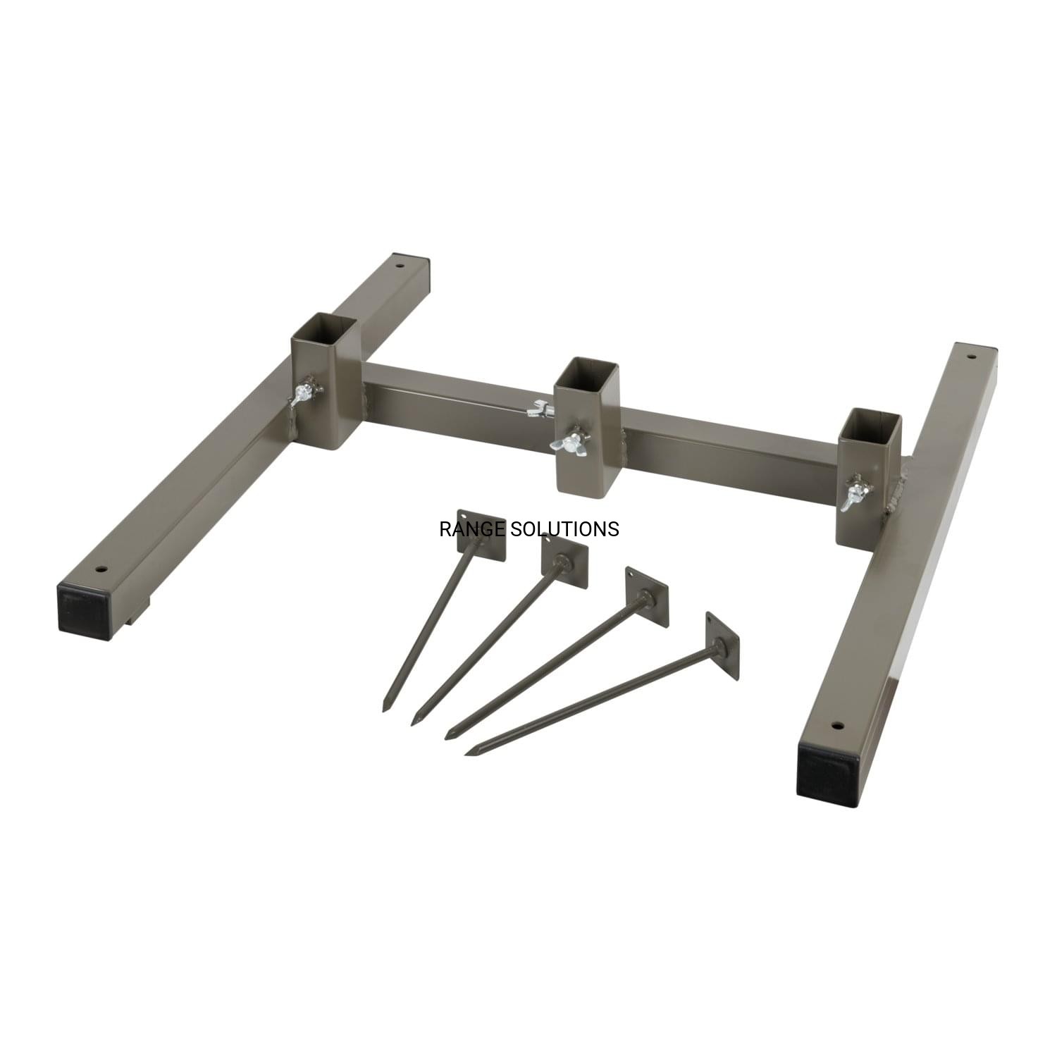Podstawa celu SRT – ALPHA® ma trzy otwory przeznaczone do montażu drewnianych listew, do których następnie montuje się hak oraz pojedyncze cele stalowe z Hardox 600 (dostępne w ofercie sklepu) albo papierowe tarcze (dostępne w ofercie sklepu). Podstawę przytwierdza się do podłoża za pomocą przeznaczonych do tego szpilek. Do montażu podstawy celu nie potrzeba żadnych narzędzi.