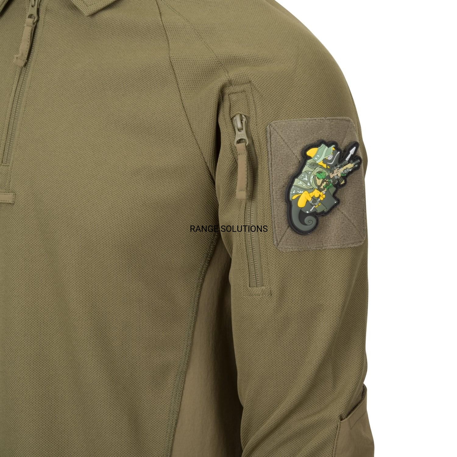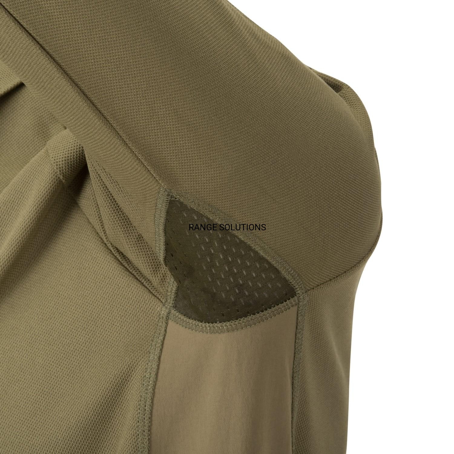 Koszula Polo Range® została zaprojektowana przez specjalistów od strzelectwa i dedykowana jest do częstego użytku na strzelnicy. W konstrukcji koszuli zastosowano przyjemny w dotyku, szybkoschnący materiał. Po bokach koszulki znajdują się specjalne panele z materiału VersaStretch®. Znajdują się one dokładnie tam, gdzie materiał najbardziej narażony jest na przetarcie podczas użytkowania pasa z kabura i ładownicami. Na łokciach umieszczone są wzmocnienia z kieszonkami na Niskoprofilowe Wkładki Ochronne. By podnieść funkcjonalność pod pachami została wszyta siatka. Panele rzepowe na ramionach pozwalają na łatwą personalizację. Dodatkowo koszulka ma dwie naramienne kieszenie i pętlę na okulary.