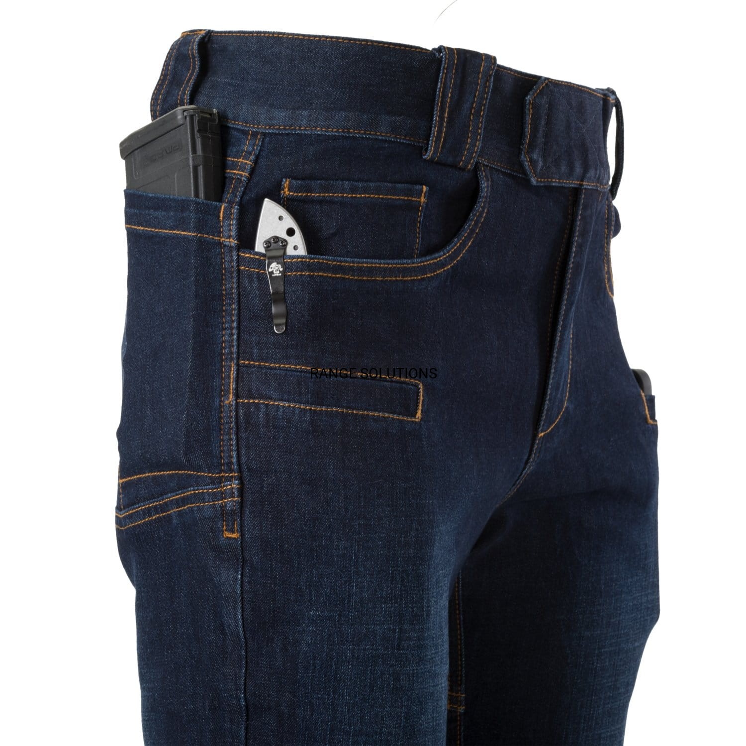 Spodnie Greyman Jeans są idealnym połączeniem taktycznych cech z nie rzucającym się w oczy wyglądem zewnętrznym. Dzięki klinowi w kroku spodnie są wytrzymałe i wygodne. Pas jest w części elastyczny i zapinany na rzep. Dzięki temu spodnie można łatwo dopasować. Przez szlufki można przepleść pas o szerokości do 50 milimetrów. Użytkownik ma do dyspozycji dziewięć kieszeni: dwie główne umieszczone w klasyczny sposób z przodu, dwie przednie kieszenie wpuszczane, cztery z tyłu i jedna wkomponowana w prawą przednią kieszeń.