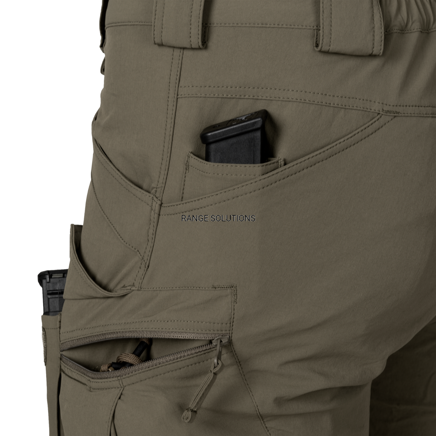 Zastosowany krój i ułożenie kieszeni sprawiają, że spodnie zachowują cywilny wygląd nie zdradzając tożsamości użytkownika. Konstrukcja OTP® umożliwia przenoszenie potrzebnego oporządzenia, a krój odpowiada anatomii ruchu człowieka. Elastyczny pas i zapięcie na velcro pozwalają łatwo dopasować spodnie. Duże szlufki pozwalają używać szerokich pasów takich jak EDC, UTL® czy Cobra® (do szerokości 50 mm). Dodatkowo tak zwany dżinsowy karczek (typ kroju) z tyłu spodni sprawia, że spodnie nie zsuwają się podczas użytkowania.