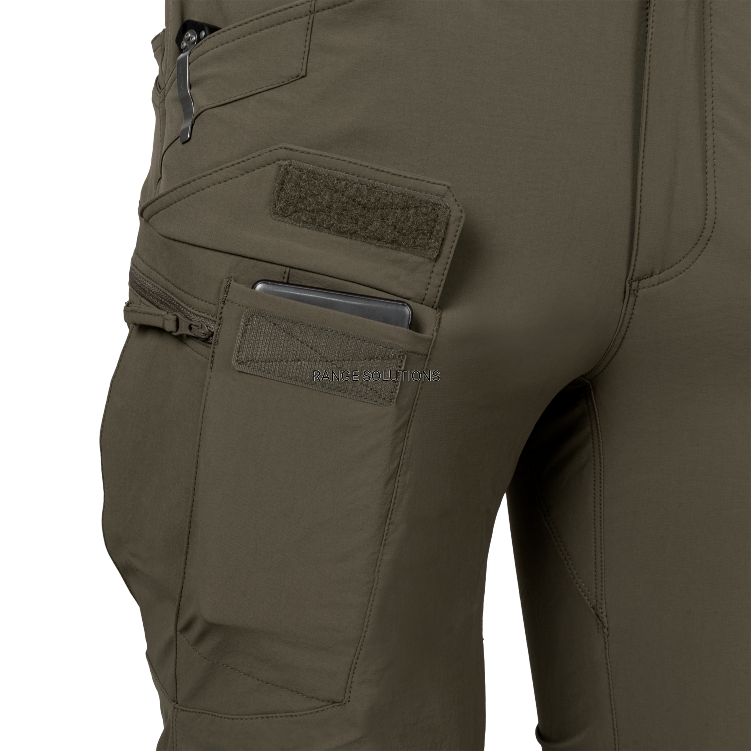 Odpowiednie rozplanowane kieszeni pozwala rozmieścić ekwipunek blisko środka ciężkości & wokół bioder i pasa. Krawędzie kieszeni przednich i tylnych są dodatkowo wzmocnione, by wytrzymały intensywne wsuwanie klipsów od noży, czy latarek. Dwie kieszonki na przodzie ud zapinane na rzep doskonale nadają się do przenoszenia smartfona ale są na tyle duże, że można umieścić w nich nawet magazynek AR/AK. Boczne kieszenie udowe zapinane na suwak na pierwszy rzut oka są płaskie, ale ich konstrukcja sprawia, że bez najmniejszego problemu można w nich przenosić całkiem spore przedmioty takie jak portfel czy mały pouch. Dzięki wewnętrznym kieszonkom na kolanach można zwiększyć komfort pracy umieszczając w nich niskoprofilowe wkładki ochronne. Szeroki wachlarz kolorów pozwala dobrać odpowiednią wersję spodni dopasowaną do warunków pracy oraz dopasować je do pozostałych części garderoby.