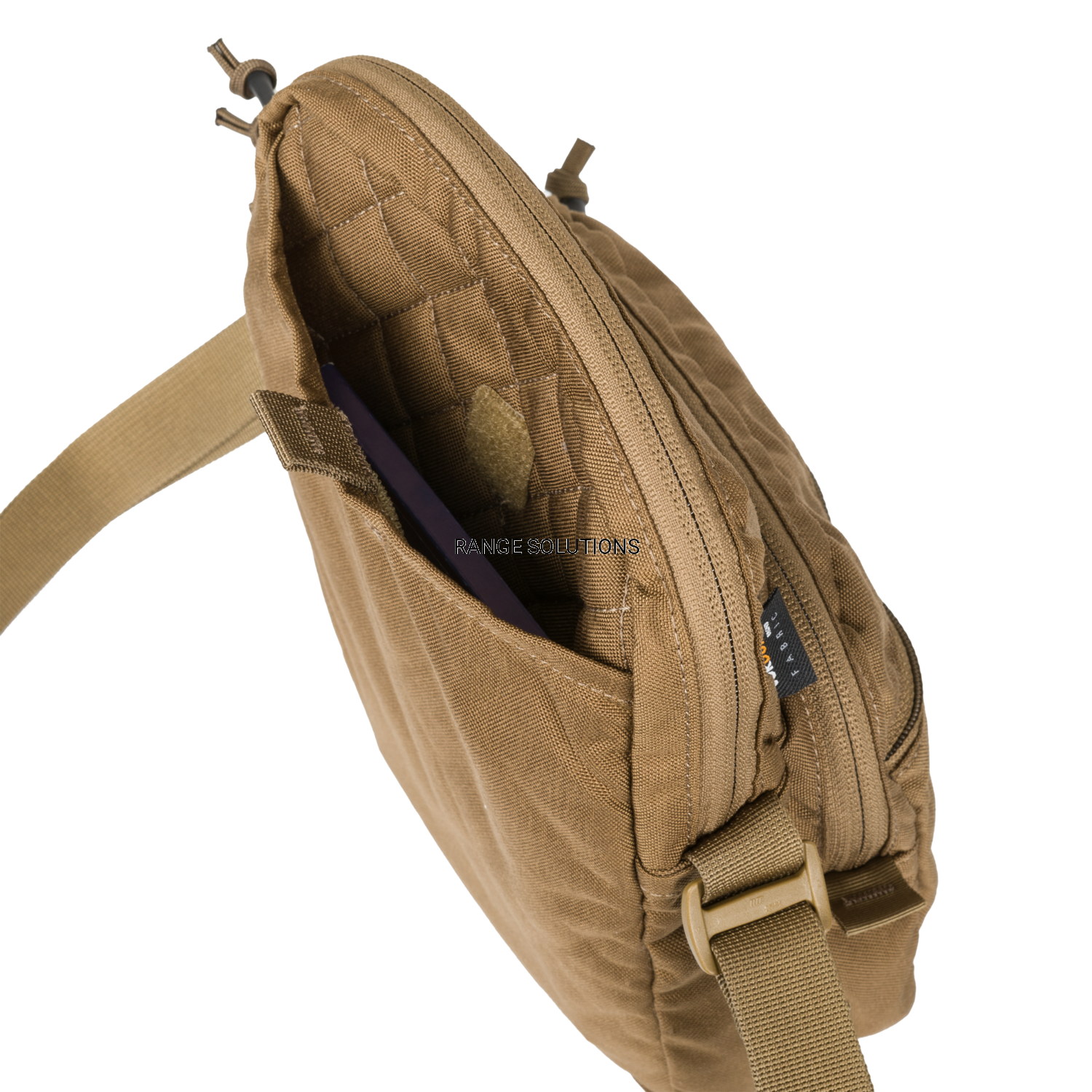 W środowisku miejskim bardzo istotna jest możliwość przenoszenia sporej ilości wyposażenia przy jednoczesnym zachowaniu niskoprofilowego charakteru sprzętu. Torba EDC COMPACT SHOULDER BAG to wręcz wzorcowy przykład tego typu sprzętu. Ta niewielka, wygodna i wytrzymała torba, wykonana z Cordury® 500D i wyposażona w regulowany pasek na ramię, z łatwością pomieści większość potrzebnych ci na co dzień przedmiotów: smartfon, tablet, klucze, notatnik, portfel, w tym także pełnowymiarowe pistolety. Wnętrze, kompatybilne z Versatile Insert System®, pozwala zamontować w nim liczne inserty z naszej oferty. Organizer w przedniej kieszeni umożliwia stabilne przenoszenie niewielkich przedmiotów. Na tylnej stronie torby znajduje się płaska kieszeń, zapinana na rzep, w której można na przykład bezpiecznie schować dokumenty