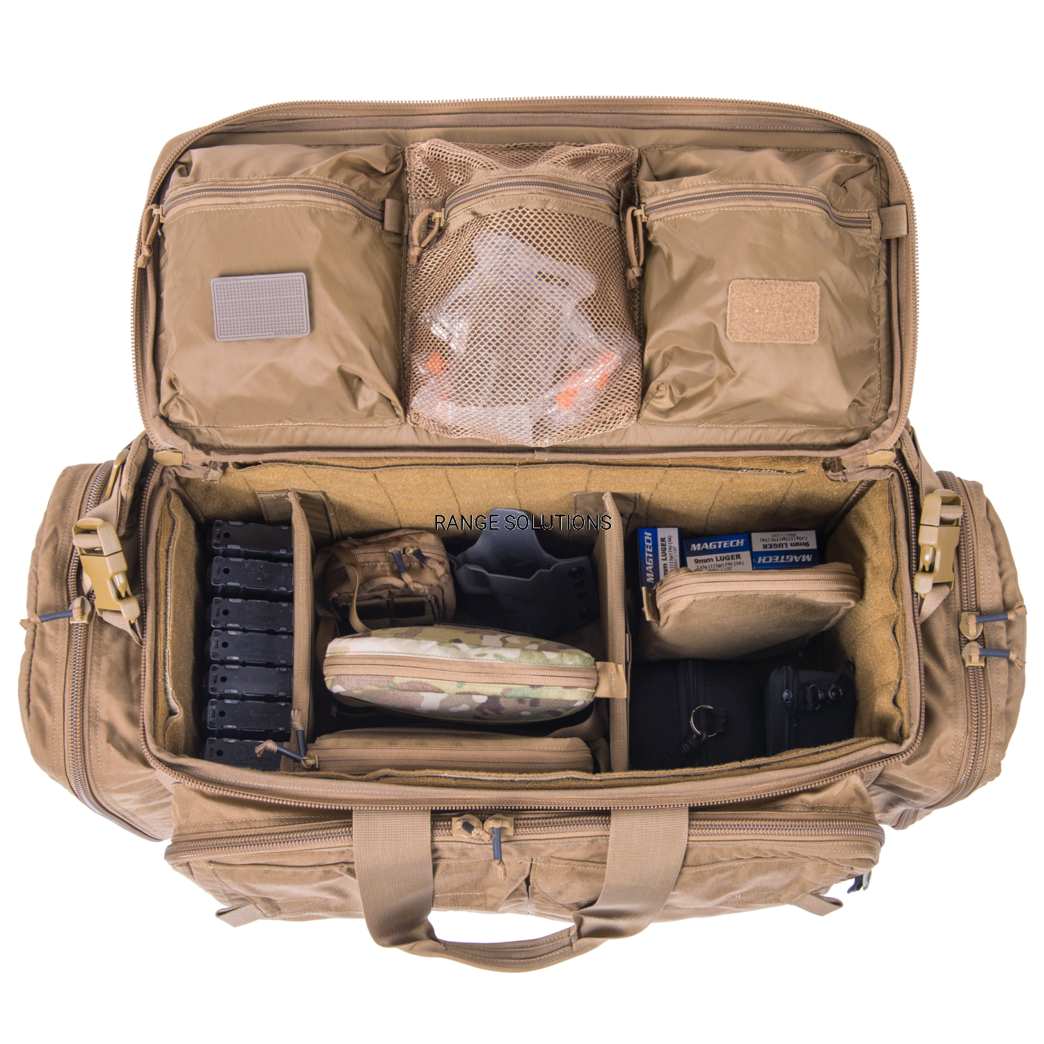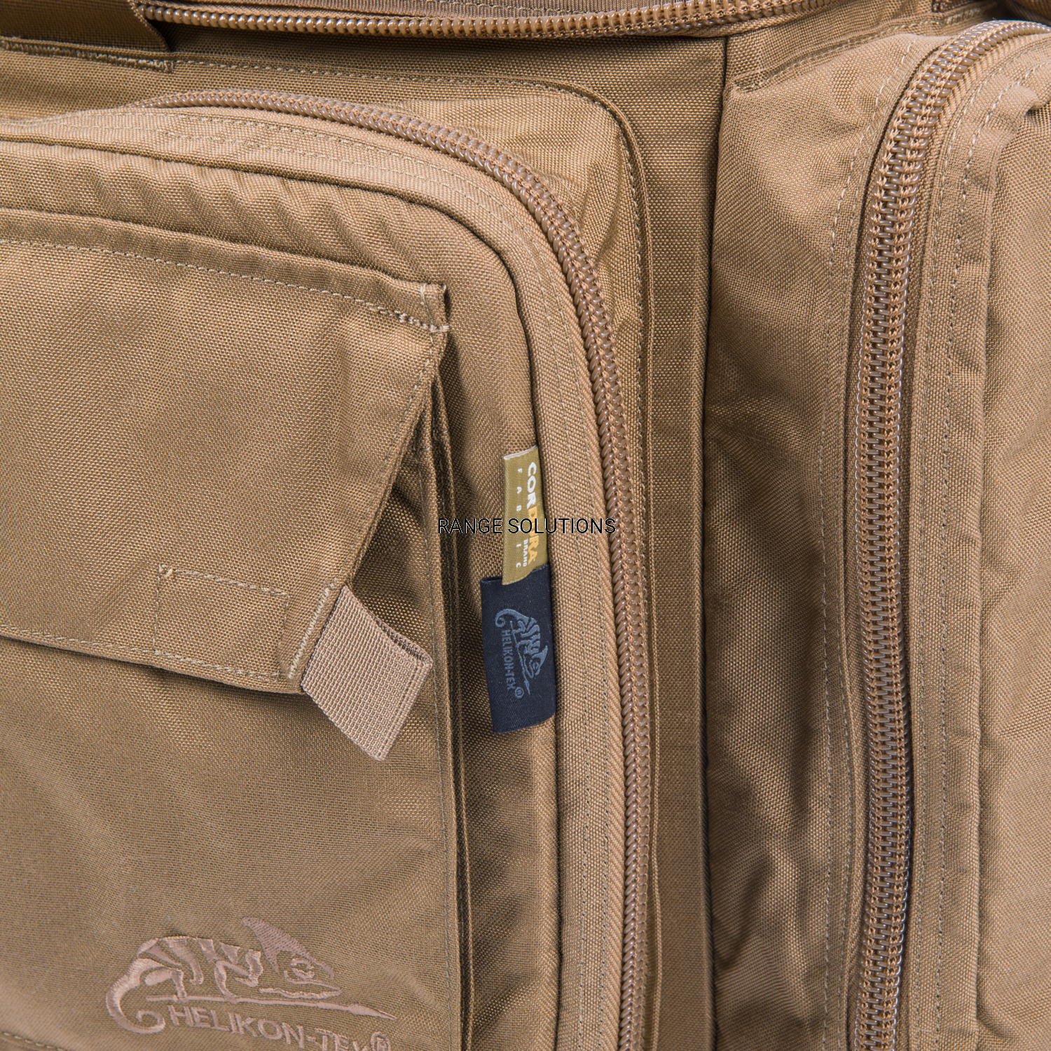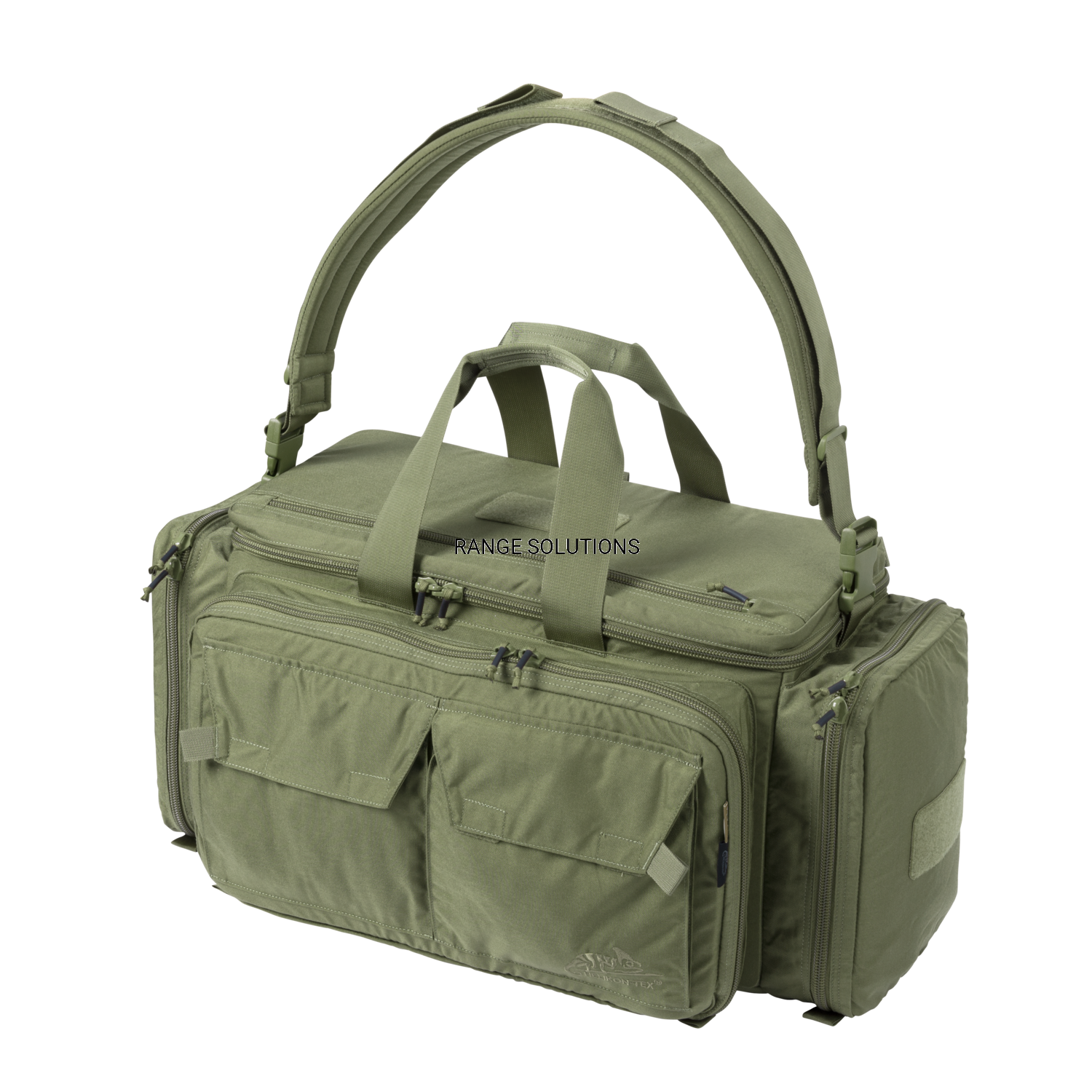 Torba Rangemaster Gear Bag® stworzona została z myślą o osobach pracujących na strzelnicy, entuzjastach strzelectwa i każdej innej osobie która potrzebuje dużej torby do przenoszenia i organizacji wyposażenia na strzelnicę. Torba jest skonstruowana tak aby ułatwić podział i organizację przenoszonego ładunku. Część kieszeni ma wewnętrzne, specjalistyczne organizery na narzędzia i środki do konserwacji broni. W wielu miejscach torbę znajdują się małe panele velcro pozwalające na szybką identyfkację zawartości dzięki zastosowaniu Helikon-Tex® Tag Patch. Wnętrze torby obszyte jest dużymi panelami velcro, pozwalającymi na dowolne konfgurowanie przestrzeni. Torba jest w pełni kompatybilna z Versatle Insert System®, pozwalającym przypinać kabury, ładownice, wkłady medyczne i tym podobne. Całość konstrukcji jest usztywniona i wykonana z niezwykle odpornej na intensywne użytkowanie Cordury®. Szeroki pas nośny - Universal Carrying Strap - oraz usztywniane uchwyty pozwalają na wygodne przenoszenie nawet bardzo ciężkiej torby.