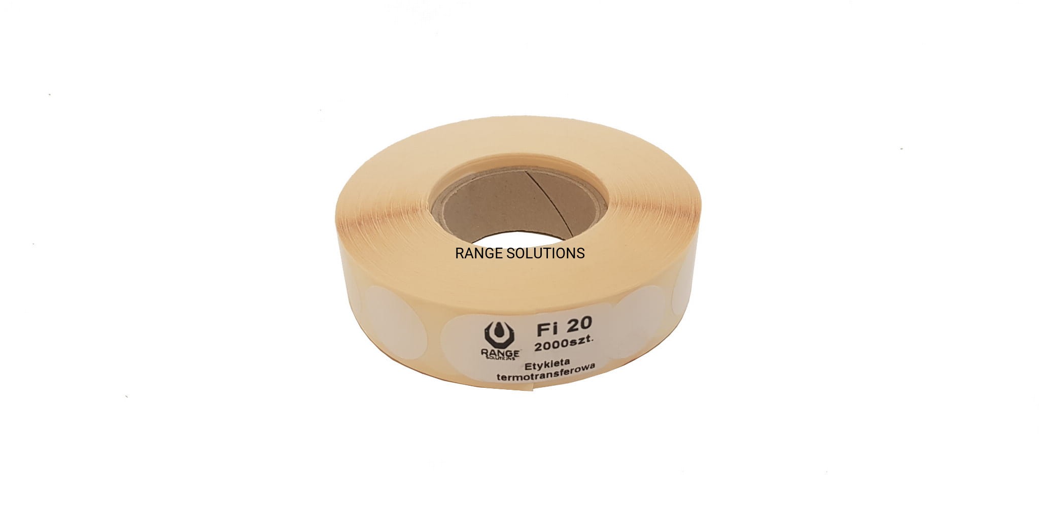 Białe samoprzylepne zaklejki do tarcz. Średnica20mm, nawinięte na rolkę w ilości 2000szt.
